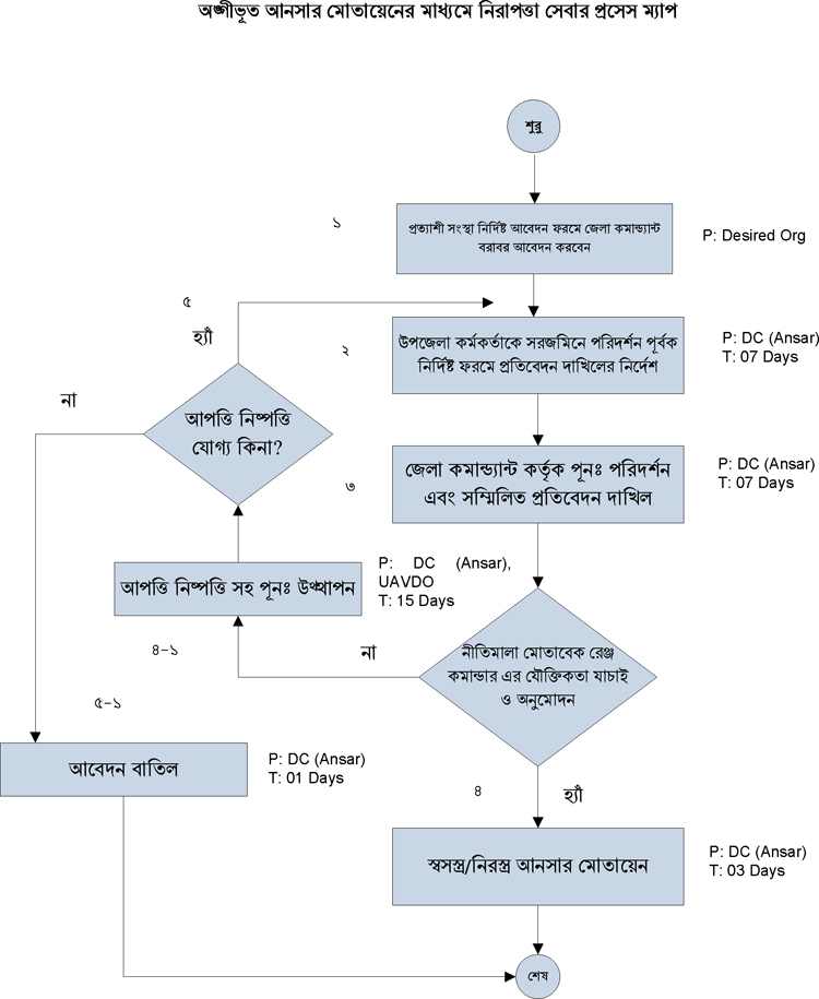 | ৩ | আঙ্গীভূত আনসারের নিরাপত্তা মোতায়েন সেবার প্রসেস ম্যাপ | দেখুন | |